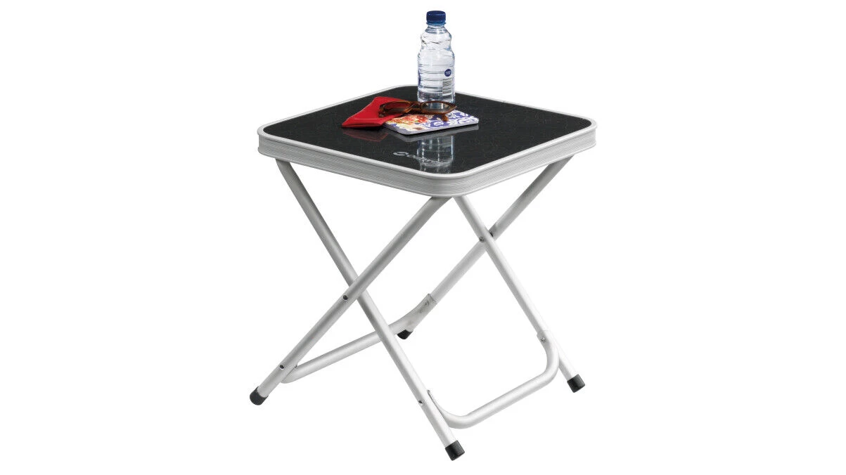 Outwell Baffin stool with a tray table top, can be used as a place to fut your feet up, somewhere to sit or store belongings you would like in easy reach, flexibility to use as needed, it is made from aliminium which helps keep it lightweight, therefore easy to pack away and carry. There is no assembly required as it opens and folds in seconds.