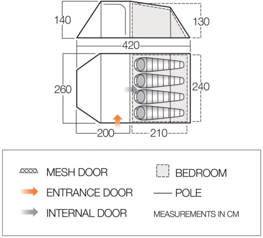 - Flysheet – Protex 70D 3,000mm polyester.